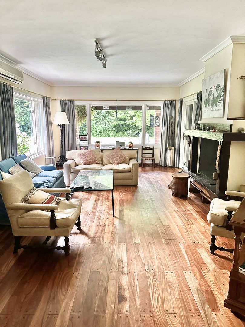 Lindísima casa en venta o alquiler temporal, estilo chalet, muy cómoda y amplia . Grandes ambientes con vista al jardín, muy arbolado y parquizado . Km 38,5 ramal Panamericana, muy buen acceso. Casa en dos plantas con techos de teja, 20 años de antigüedad. 450 metros cubiertos, excelente orientación. Aberturas americanas doble vidrio, madera por dentro, aluminio afuera, mosquiteros y postigos. Pisos de madera Viraro, hall íntimo, living con chimenea, comedor, toilette, cocina con comedor diario, lavadero y dependencia. Playroom con salida a la galería, tres dormitorios en suite en planta baja y uno en planta alta. escritorio. Calefacción por radiadores. Pileta de 12 x 5 con gran solarium. Se aceptan mascotas, incluyen gastos como expensas, gas, wifi, jardinero. NO INCLUYE luz y cloro. Fiestas y enero 4400 dólares, febrero 3.000. Disponible para alquiler anual desde junio de 2026!!! Lista para ser habitada, apta para crédito, los valores y medidas son orientativos y pueden sufrir variaciones desde la fecha de su publicación. GEMIGNANI PROPIEDADES.