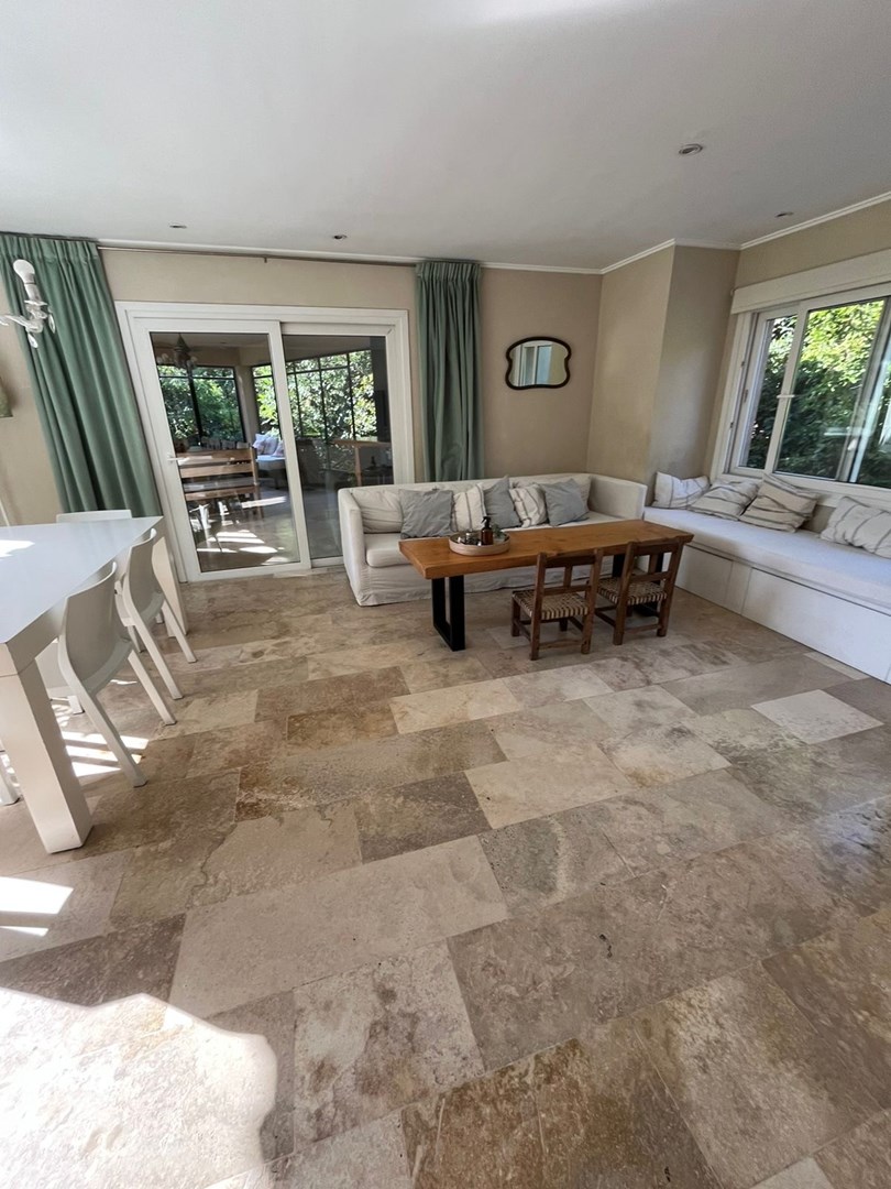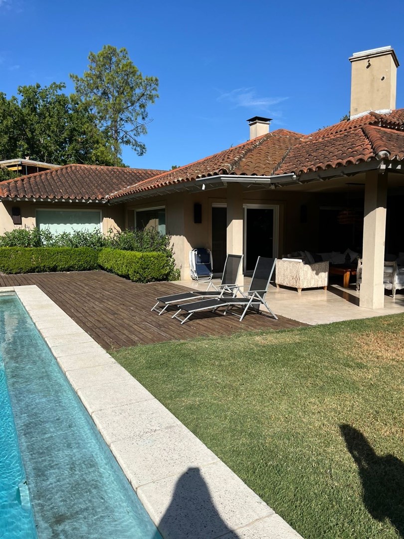 El mejor acceso KM 38 de Panamericana .. Impecable , con suittes en panta baja ....increible ubicacion dentro del barrio . Lindisima casa toda reciclada de 429 m2, sobre lote de 1758 m2. Hall de entrada, toilette, living con chimenea muy amplio y luminoso con salida a la galería, comedor. Playroom grande, un cuarto en suite, dos cuartos donde un baño. Cocina muy amplia con isla, lavadero, dependencia de servicio con su baño. Otro playroom grande con salida a un quincho con parrilla cerrado. PA: cuarto principal en suite con vestidor y baño completo, escritorio. Amplia galería con Parrilla. Pileta.Riego Calefaccion por losa radiante. AA en todos los ambientes, piso de travertino , aberturas DVH . Tortugas Country Club es uno de los clubes más importantes y tradicionales de Pilar. Tiene una ubicación privilegiada, sobre Panamericana en el Km 38,5. El barrio privado cuenta con una infraestructura deportiva muy completa, con canchas de golf, de polo, tenis, fútbol, y otras actividades sociales y deportivas. - 186 hectáreas divididas en 428 lotes que poseen una superficie promedio de 1500m2. Amenities - Infraestructura social y deportiva para realizar diferentes actividades familiares. - Cancha de golf para práctica de 9 hoyos, casilla de palos, caddies, driving, putting green, pro shop, bar y restaurant. - 8 Canchas de tenis - 4 Canchas de paddle - Pileta -6 Canchas de futbol 11 - equitación - Plaza de niños y colonia de vacaciones y fines de semana para todas las edades - Restaurant de menores y SUM - Estación de servicio completa - Cajero automático- Supermercado