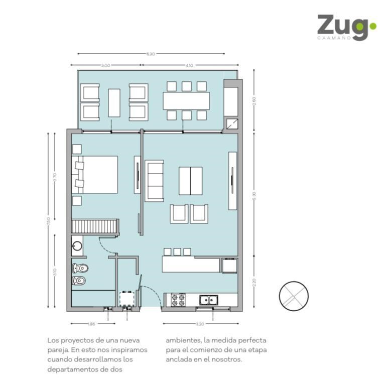 Condominios Zug Caamaño. Departamento de dos ambientes (tipologia S ). Muy buen acceso. Cerca de colegios y centros comerciales. Alquiler anual sin muebles por dos años (las fotos son a modo ilustrativo). CONSULTAR VALOR DEL ALQUILER EN PESOS.