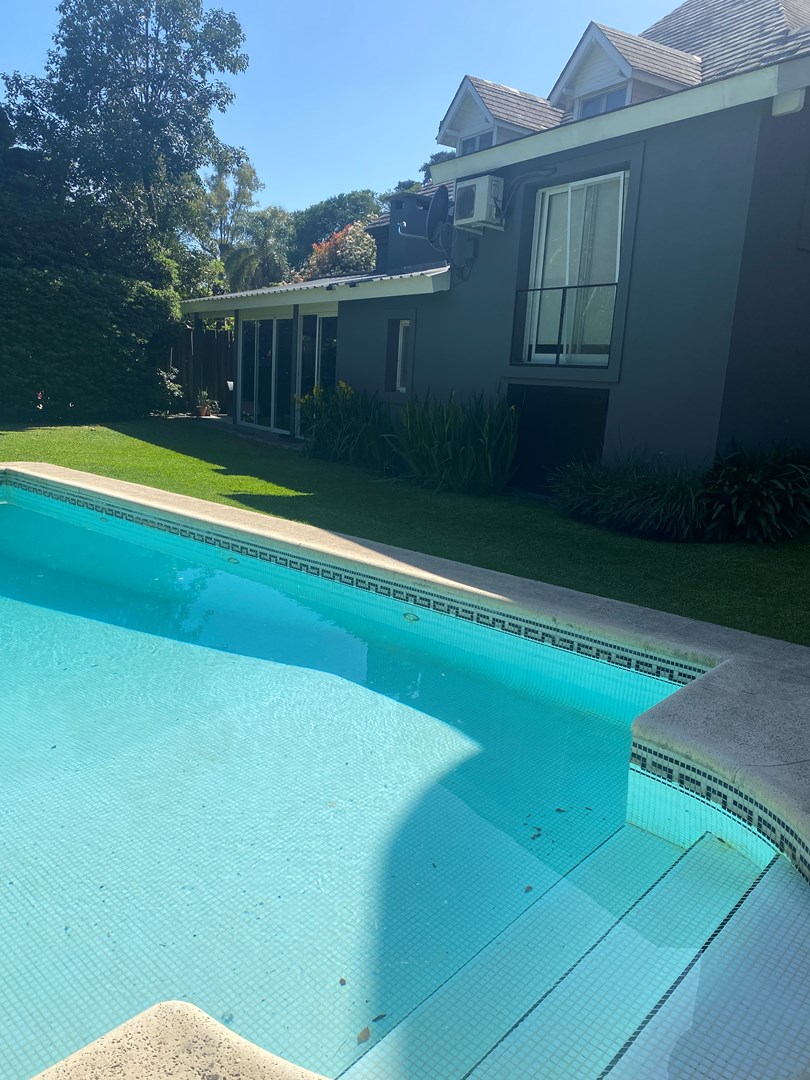 Excelente acceso de Panamericana KM 38. Frente al lago , con excelente vista desde el living . Living Comedor , pisos de madera , chimenea , todo con grandes ventanales . Gran cocina con comedor diario , muy cómoda con salida al jardín y a la galería . Una suite junior muy amplia con playroom que se pueden hacer dos dormitorios , con vestidor y baño . Un dormitorio mas con baño completo . Master suite en planta alta con baño compartimentado y vestidor . Sótano para guardado y lavadero . dependencia de servicio . Quincho con mesa para 14 personas ,parrilla , pileta con solarium , revestida con venecitas e iluminada con led . Calefacción por radiadores . Aberturas de aluminio DVH Aire frio calor en todos los ambientes . Acerca de El Barranco : Country consolidado con gran arboleda y entorno residencial tranquilo. Seguridad 24 hs y completas instalaciones deportivas y sociales. Ubicación estratégica en Pilar con buen acceso a Panamericana. Ideal para quienes buscan un barrio clásico, seguro y con vida social activa. Barrio con canchas de tenis , paddle , gran pileta , muy arbolado con bosque , lago, isla y cascada.