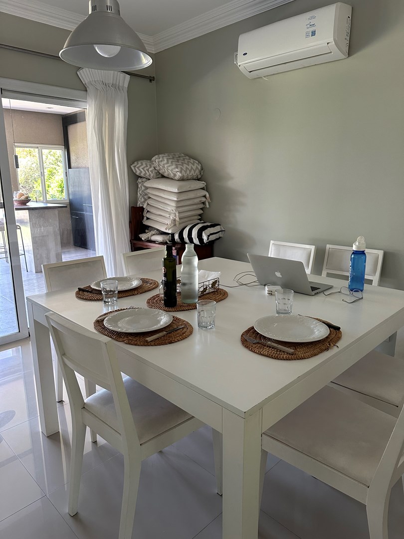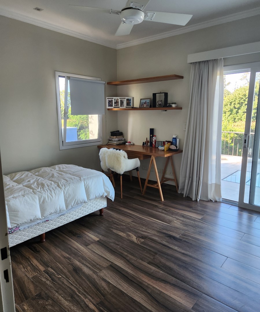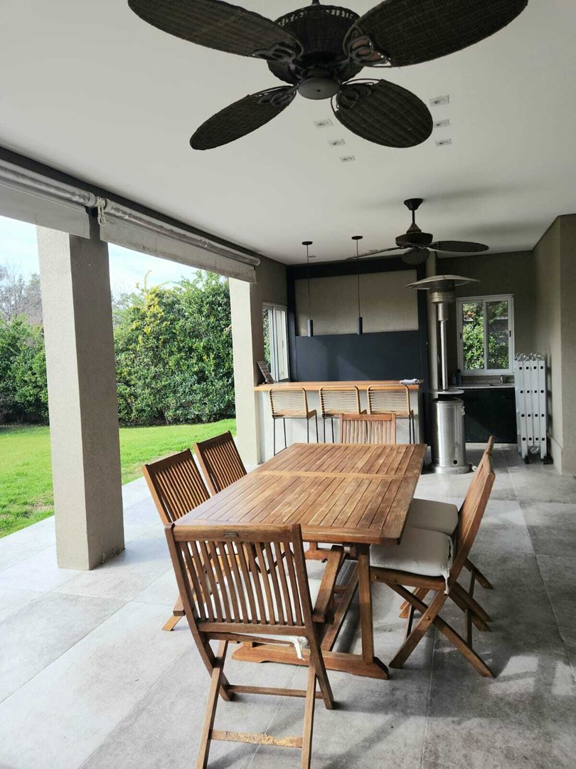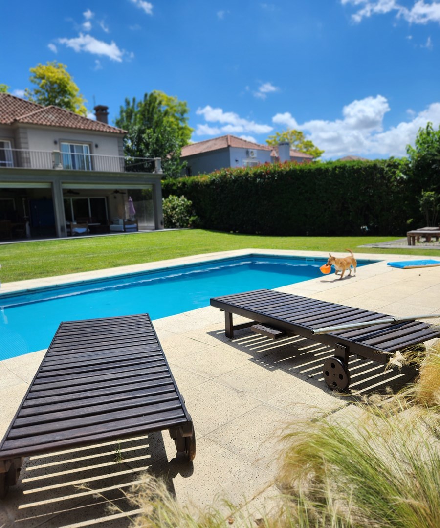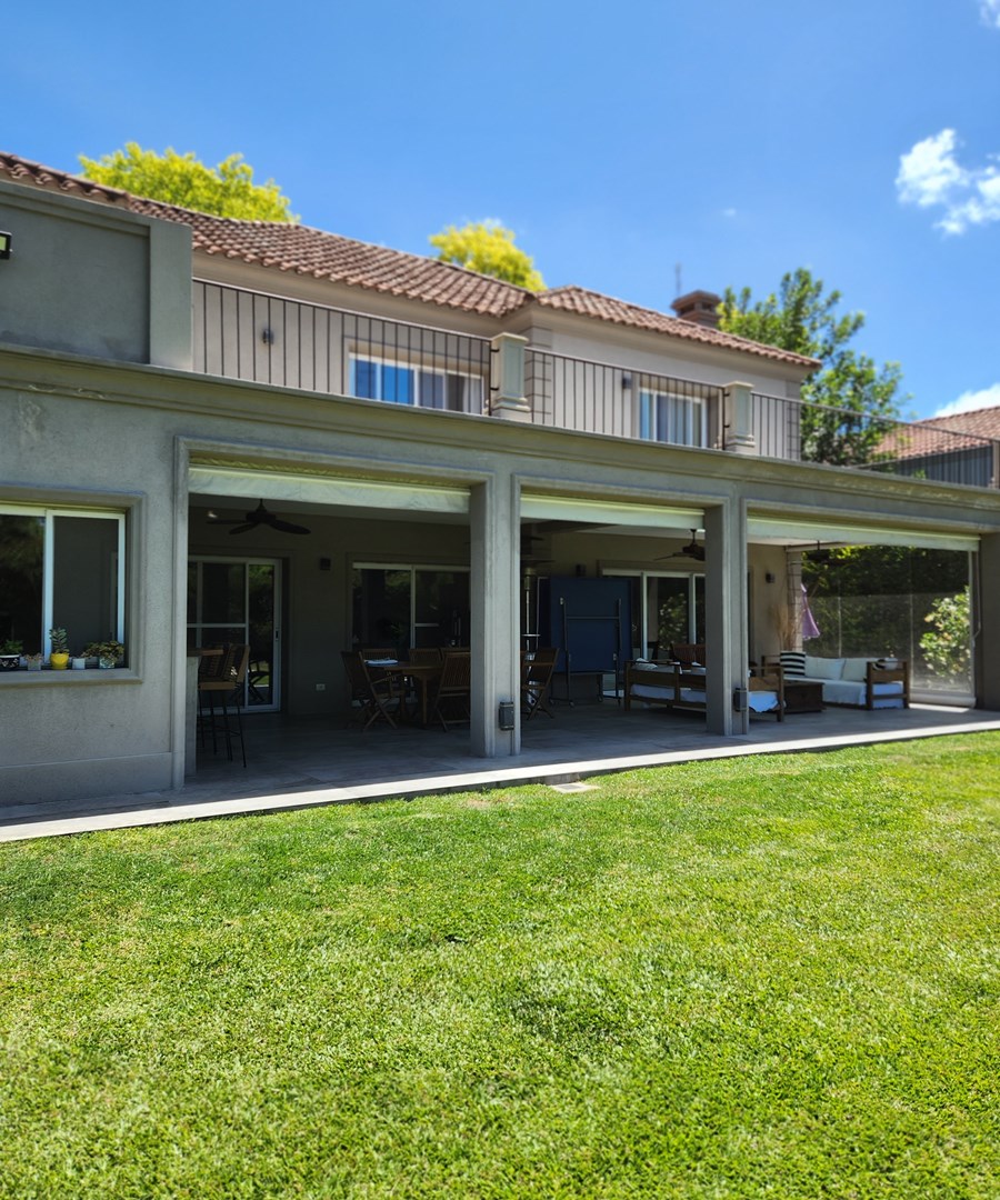 IMPECABLE ... lindisima casa toda hecha anueva , moderna , luminosa , excelente calidad . Abertuvas PVC con DVH , aires acondicionados en todos los ambientes y ventiladores de techo , calefaccion por piso radiante . Livingo comedor con chimenea , muy amplio . Cocina nueva con isla con comedor diario y playroom que se puede unir al living comedor por una puerta de hierro con vdirio repartido muy cachero . Lavadero y dependencias de servicio . Plamta alta una master suitee uy amplia con vestidor y baño todo muy luminoso con calcon al jardin . Tres cuartos que comparten un baño . Galeria muy amplia con barra y parrilla , pileta , jardin parquizado con riego .