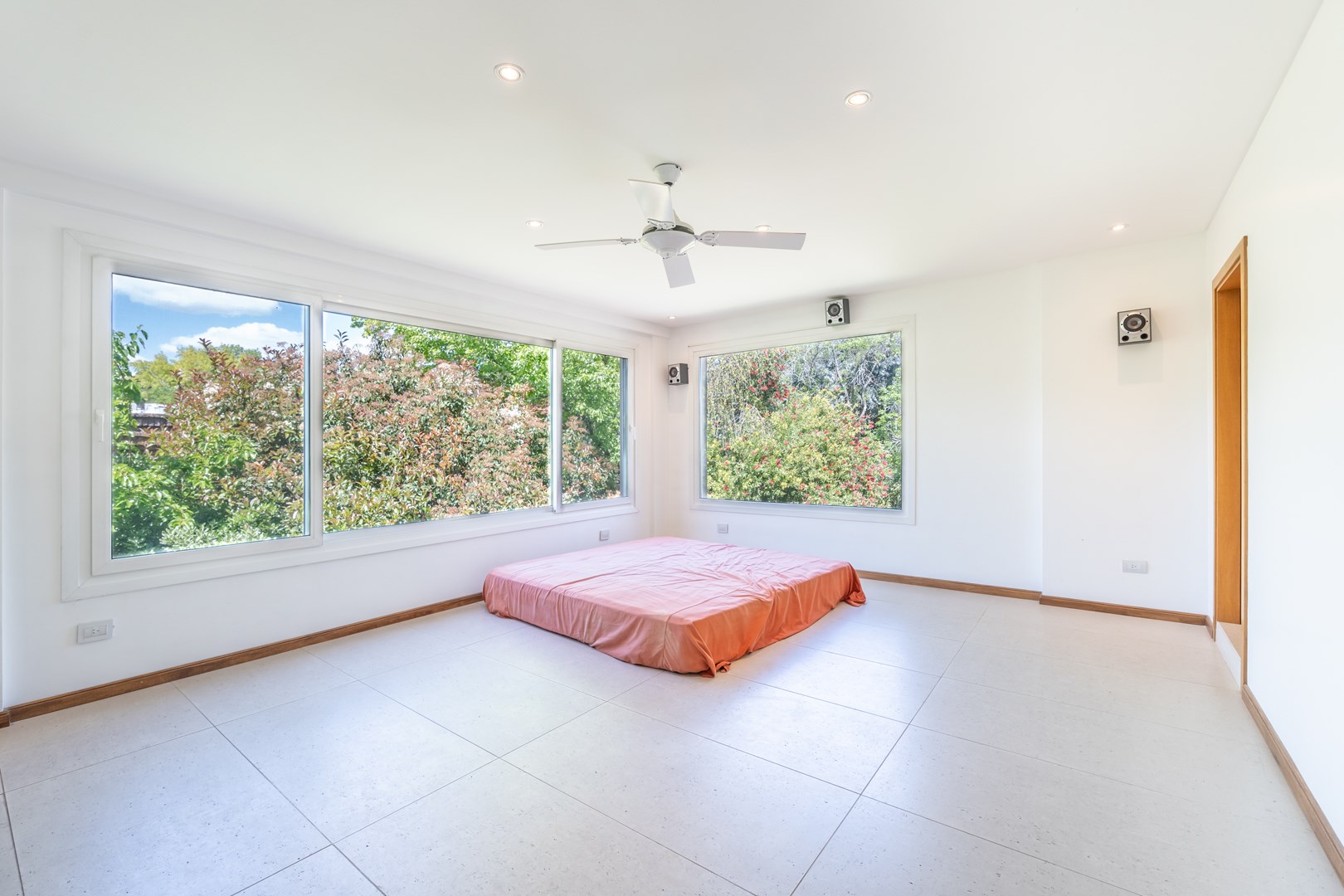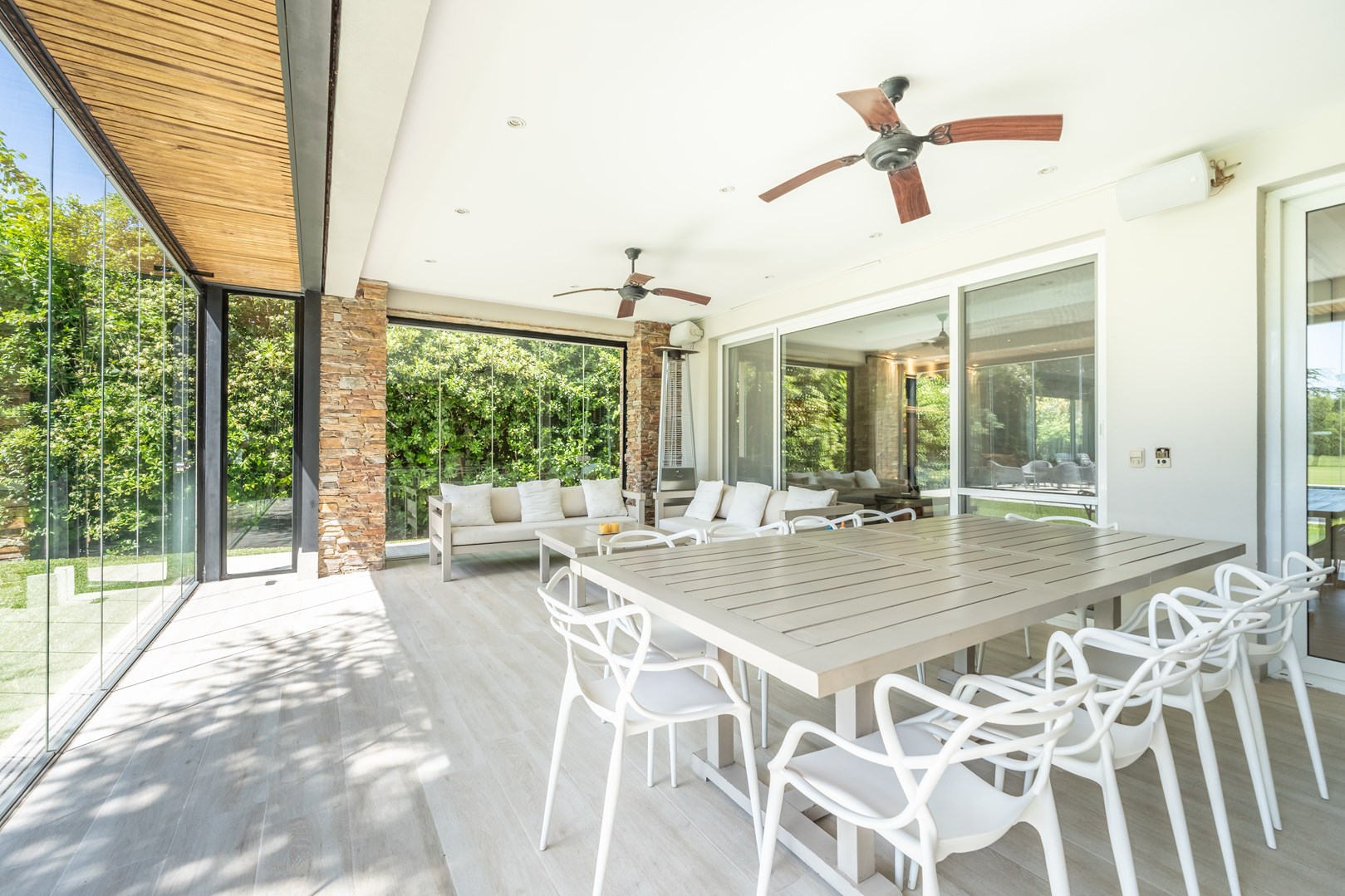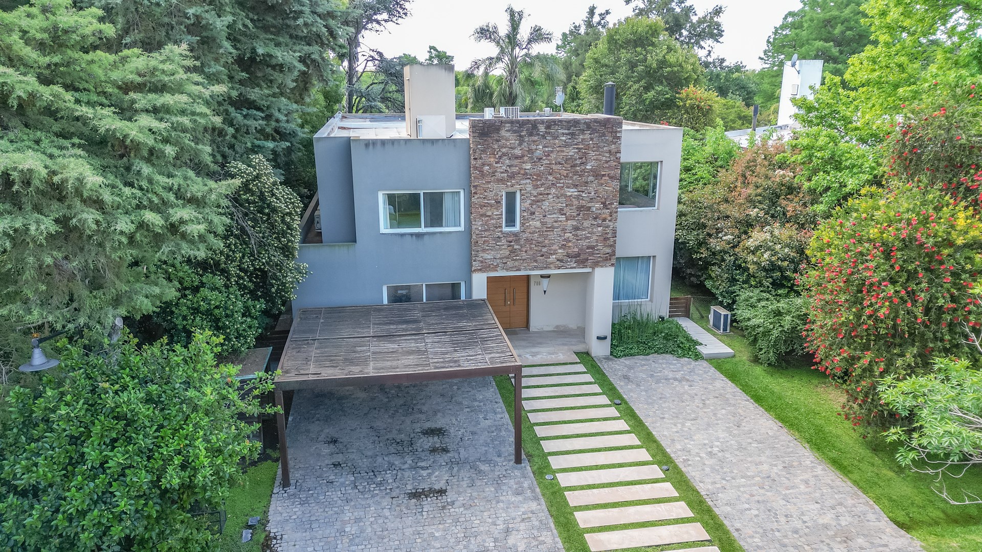 Moderna propiedad de estilo racionalista con inmejorable vista a golf a la venta y/o alquiler, desarrollada en 2 plantas. En P. Baja: Hall de Recepción, Escritorio, Comedor, Living con Hogar, Family, Toilette, Cocina, imponente bodega iluminada, cocina con isla, amplio lavadero con dependencia con baño. Quincho integrado cubierto con cerramiento tipo "REIKI" con parrilla y baño. En Planta Alta: Importante Playroom, 1 Suite Junior, 2 Habitaciones que comparten 1 baño completo y 1 Master Suite con "LA VISTA", vestidor y baño completo. En Exterior: Garage semicubierto para 2 autos y piscina azulejada, iluminada y climatizada, sector de fuegos con vista a golf e importante parquización. Performance: Calefacción por piso radiante, Splits en todos los ambientes, pisos de madera y porcellanato, griferías con cierre cerámico, aberturas de PVC con DVH y mosquiteros, Riego x aspersión, Filtro de pileta automatizado, detalles de ALTA CATEGORIA.