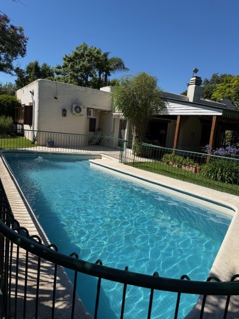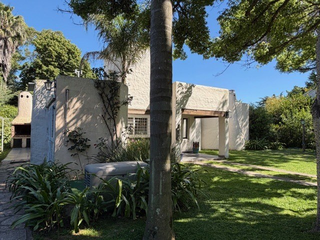 Casa Estilo Mediterráneo con INMEJORABLE VISTA A GOLF DOBLE FAIRWAY!! Desarrollada en una sola planta. Hall de Recepción, Toilette, Suite Huéspedes, Cocina con doble acceso, Comedor, Living con Hogar con increíble vista a parque, piscina y golf, Family, Suite Principal y 2 dormitorios que comparten 1 baño completo. En Exterior: Lavadero, Parrilla y 2 sectores de galerías para disfrutar la inmejorable vista que posee el lote. Aberturas de PVC con DVH y Mosquiteros. Calefacción Central por Radiadores y Splits. Pisos de Cerámicos. Grupo Electrógeno de ultima generación. POSESION MAYO 2026.-