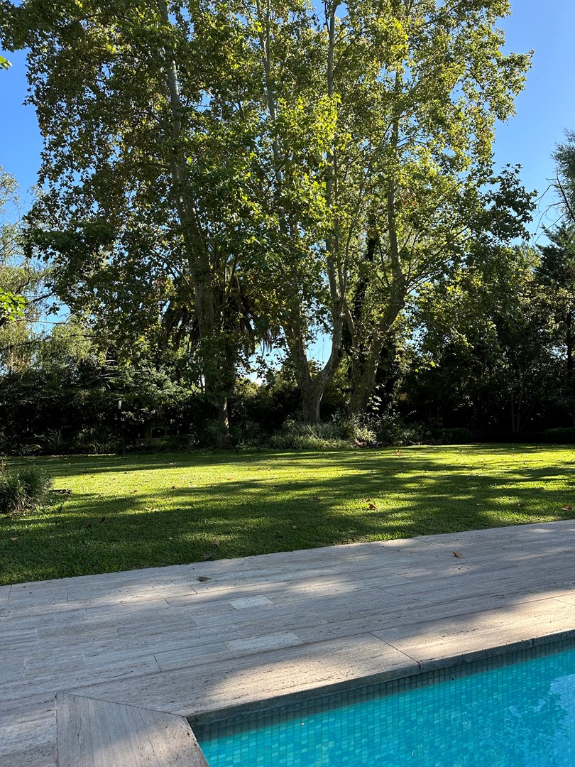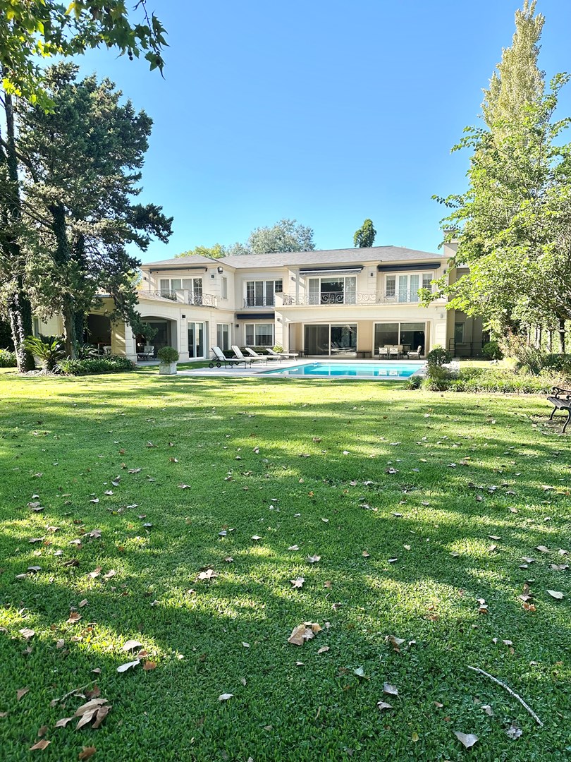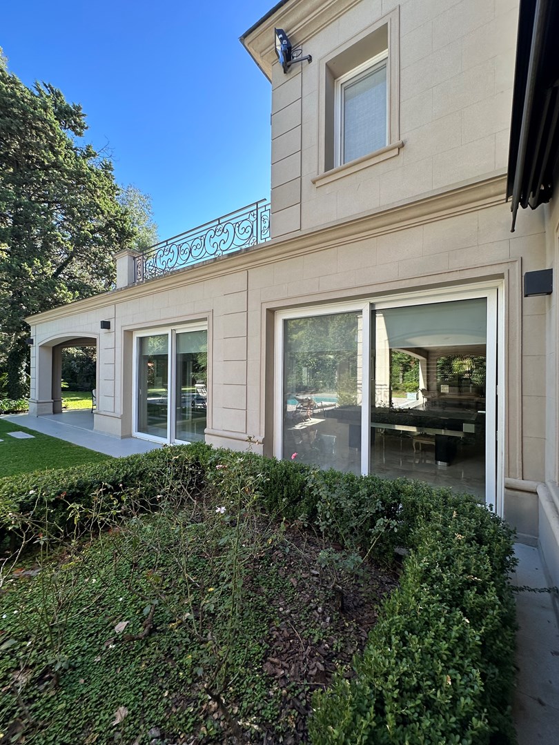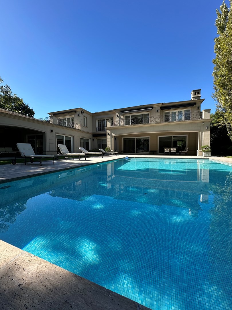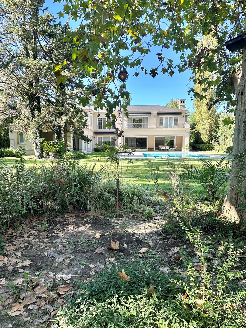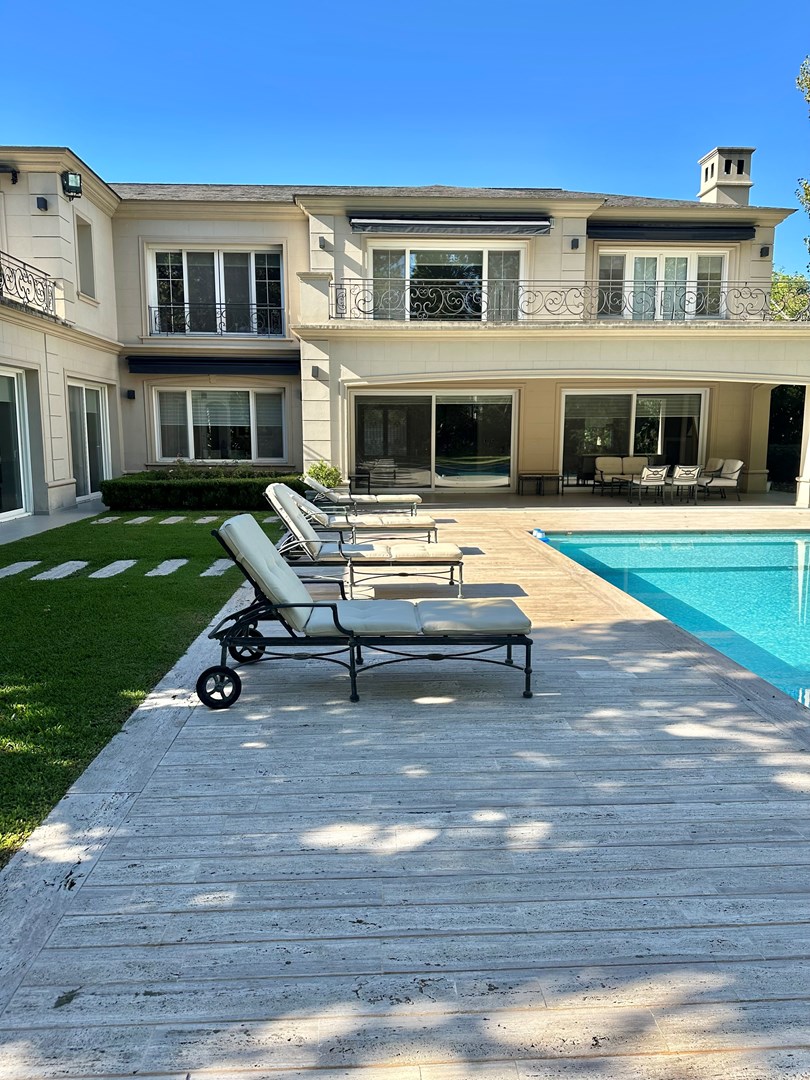 Categórica propiedad Estilo Francés. En excelente ubicación, sobre lote de 2250 m2, con 30 mts lineales de frente, con añosa arboleda, construida por reconocido estudio de Arquitectura; se ofrece a la venta una de las mejores opciones en Highland Park. Desarrollada en 2 plantas. En P. Baja: Hall de recepción, living con importante hogar, comedor principal con escritorio de generosas medidas, toilette y placard de recepción, cocina con comedor diario y family, lavadero, dependencia de servicios con baño y entrada independiente, e importante sector de bar y quincho integrado cubierto. En. P. Alta: 4 dormitorios de generosas medidas que comparten 2 baños completos y Master Suite con super vestidor y baño de generosas medidas con hidromasaje. Acceso a la planta alta por 2 escaleras independientes. En Exterior: 2 importantes Galerías semicubiertas, una con baño de exterior y parrilla y la otra a continuación del living. Piscina de 50 m 2 azulejada, iluminada y climatizada. Garage semicubierto para 4 autos, importante playa de estacionamiento con pisos de pórfido. Calefacción por piso radiante mas splits en todos los ambientes. Griferías y Sanitarios de primer nivel. Aberturas de PVC con DVH y mosquiteros. Grupo electrógeno de ultima generación. Sistema de alarma con camaras de seguridad. Riego y filtro automatizado.