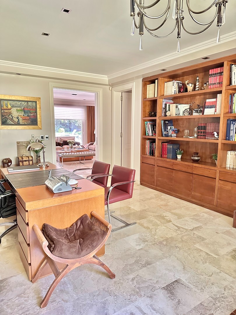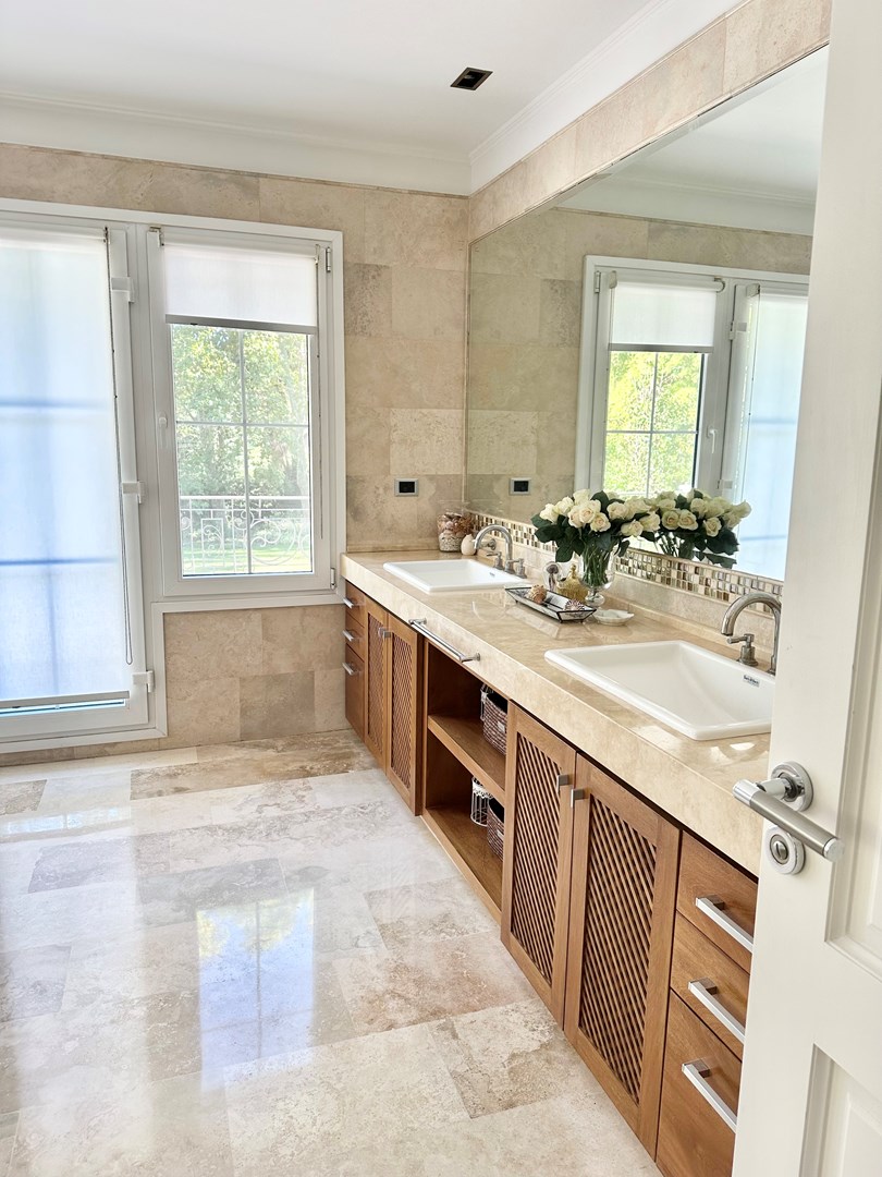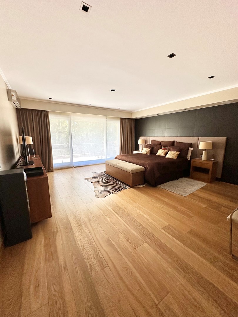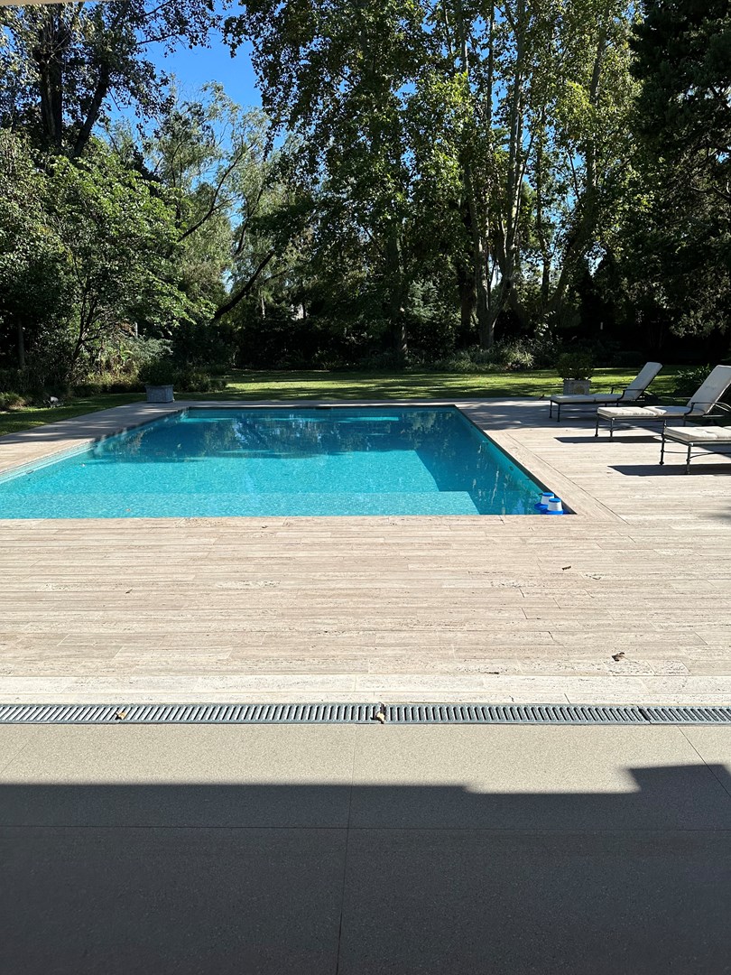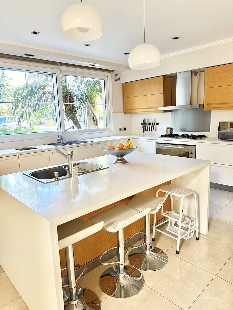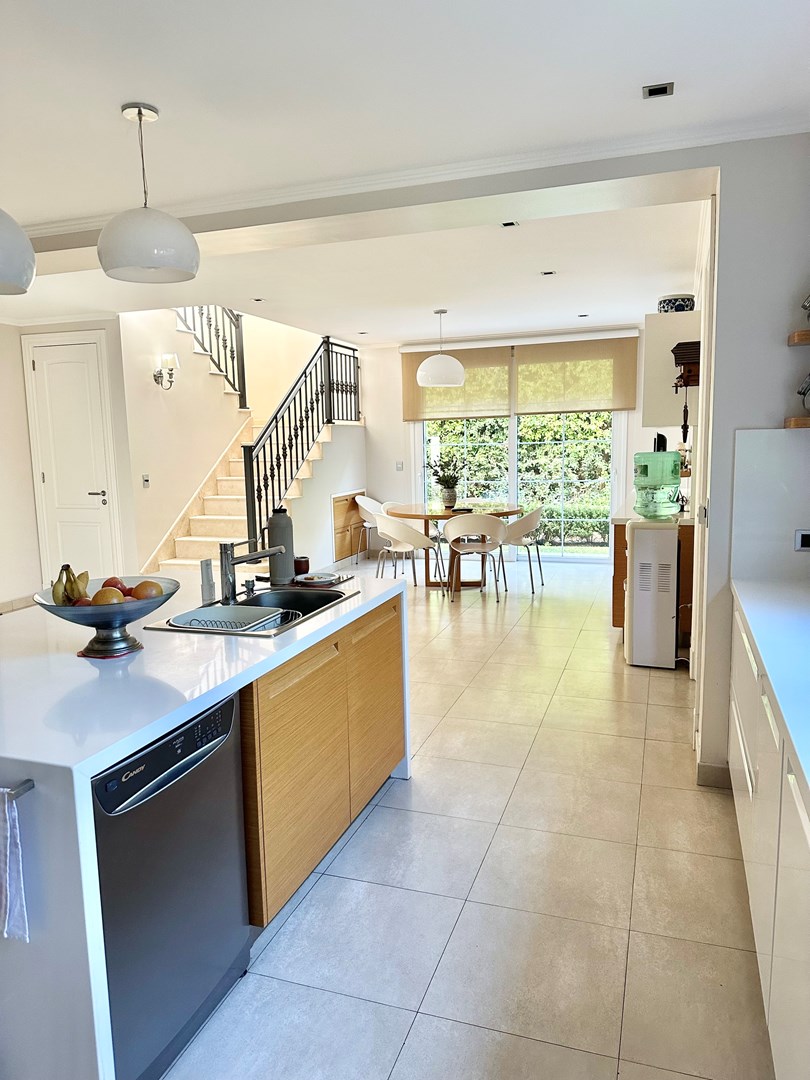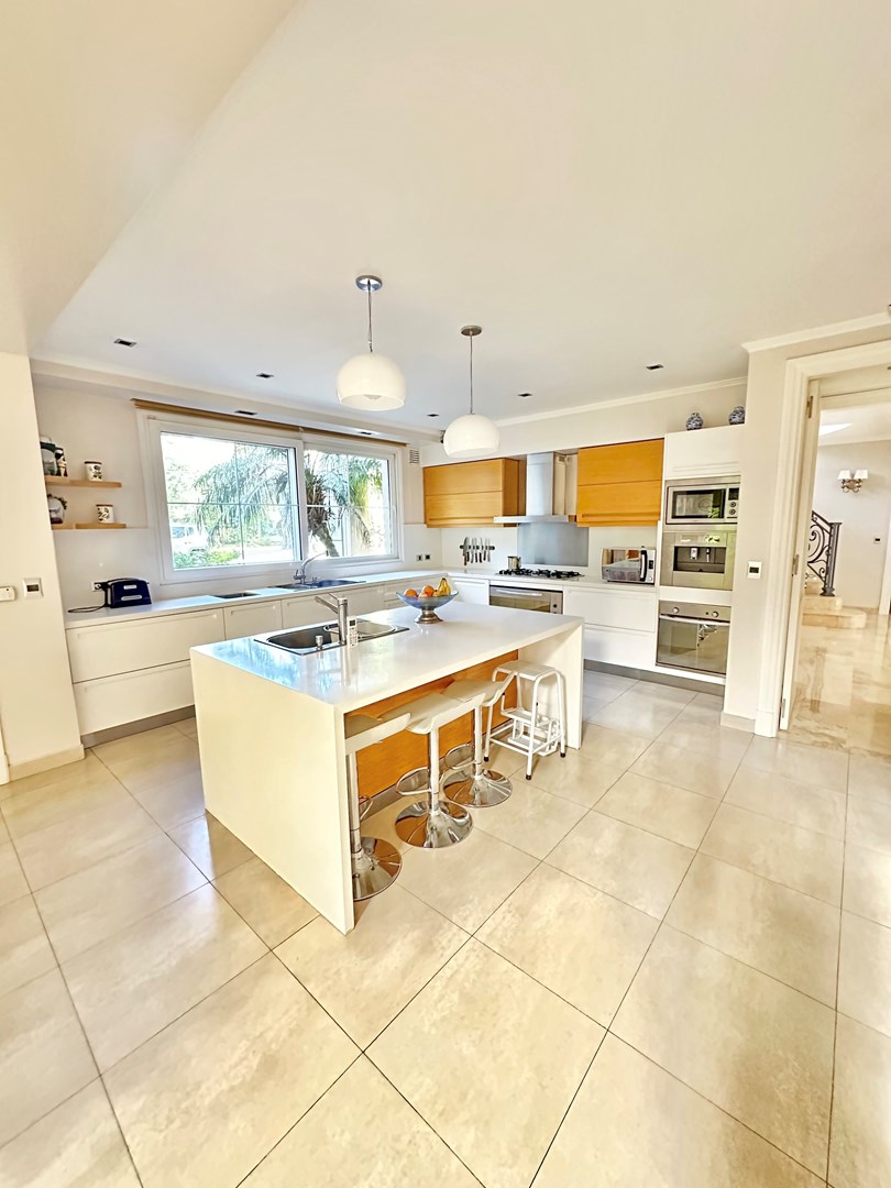 Categórica propiedad Estilo Francés. En excelente ubicación, sobre lote de 2250 m2, con 30 mts lineales de frente, con añosa arboleda, construida por reconocido estudio de Arquitectura; se ofrece a la venta una de las mejores opciones en Highland Park. Desarrollada en 2 plantas. En P. Baja: Hall de recepción, living con importante hogar, comedor principal con escritorio de generosas medidas, toilette y placard de recepción, cocina con comedor diario y family, lavadero, dependencia de servicios con baño y entrada independiente, e importante sector de bar y quincho integrado cubierto. En. P. Alta: 4 dormitorios de generosas medidas que comparten 2 baños completos y Master Suite con super vestidor y baño de generosas medidas con hidromasaje. Acceso a la planta alta por 2 escaleras independientes. En Exterior: 2 importantes Galerías semicubiertas, una con baño de exterior y parrilla y la otra a continuación del living. Piscina de 50 m 2 azulejada, iluminada y climatizada. Garage semicubierto para 4 autos, importante playa de estacionamiento con pisos de pórfido. Calefacción por piso radiante mas splits en todos los ambientes. Griferías y Sanitarios de primer nivel. Aberturas de PVC con DVH y mosquiteros. Grupo electrógeno de ultima generación. Sistema de alarma con camaras de seguridad. Riego y filtro automatizado.