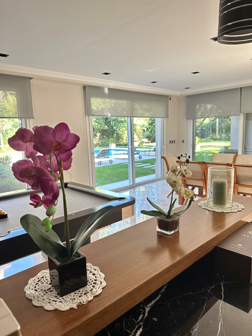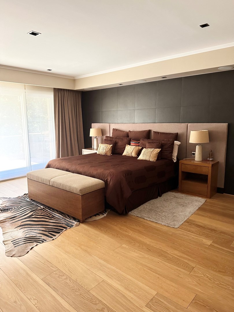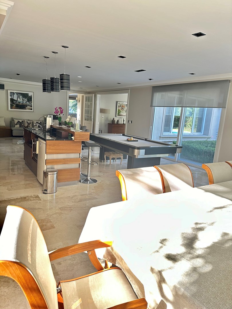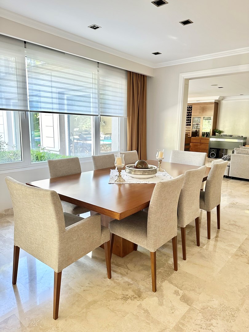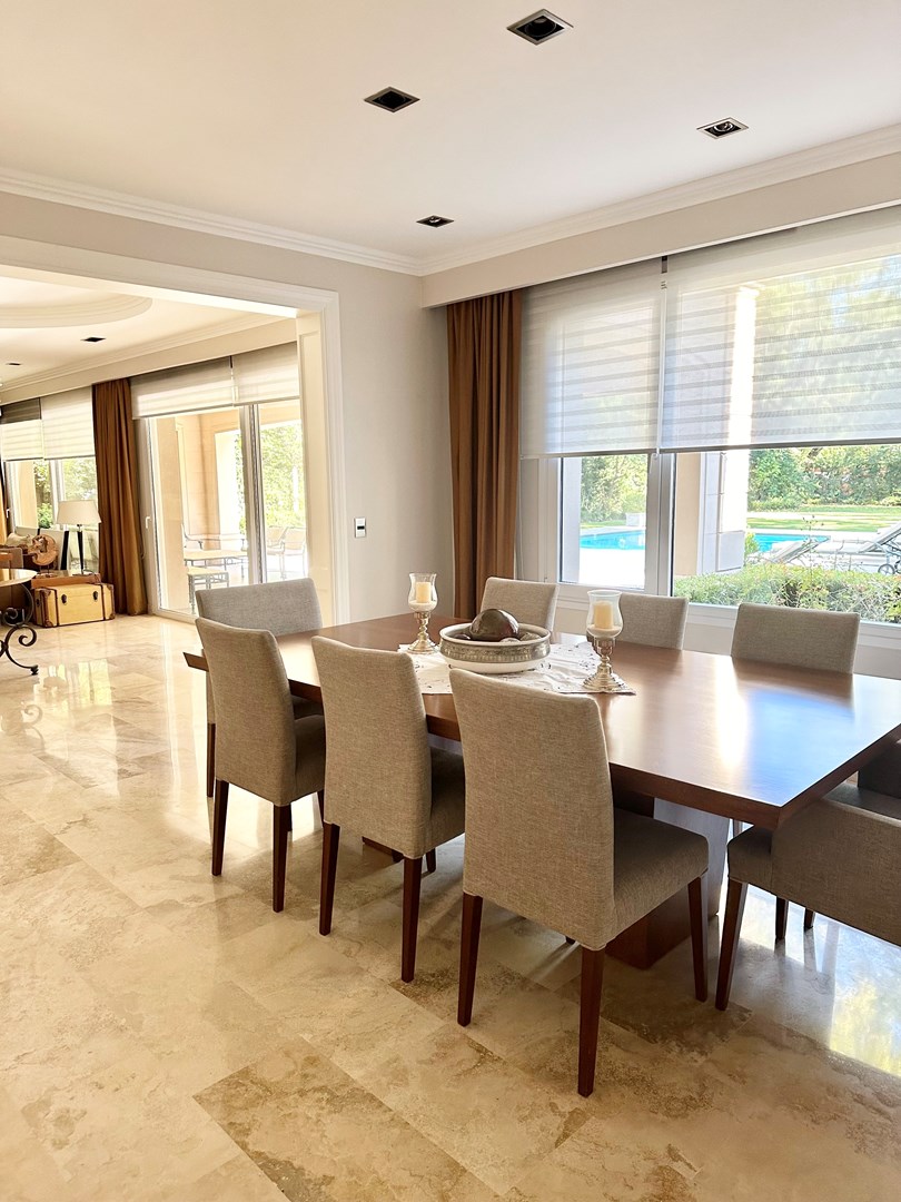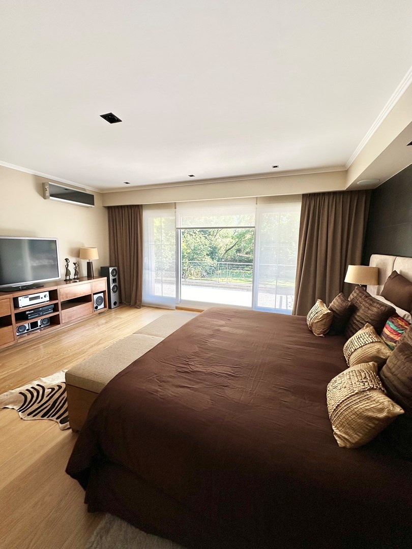 Categórica propiedad Estilo Francés. En excelente ubicación, sobre lote de 2250 m2, con 30 mts lineales de frente, con añosa arboleda, construida por reconocido estudio de Arquitectura; se ofrece a la venta una de las mejores opciones en Highland Park. Desarrollada en 2 plantas. En P. Baja: Hall de recepción, living con importante hogar, comedor principal con escritorio de generosas medidas, toilette y placard de recepción, cocina con comedor diario y family, lavadero, dependencia de servicios con baño y entrada independiente, e importante sector de bar y quincho integrado cubierto. En. P. Alta: 4 dormitorios de generosas medidas que comparten 2 baños completos y Master Suite con super vestidor y baño de generosas medidas con hidromasaje. Acceso a la planta alta por 2 escaleras independientes. En Exterior: 2 importantes Galerías semicubiertas, una con baño de exterior y parrilla y la otra a continuación del living. Piscina de 50 m 2 azulejada, iluminada y climatizada. Garage semicubierto para 4 autos, importante playa de estacionamiento con pisos de pórfido. Calefacción por piso radiante mas splits en todos los ambientes. Griferías y Sanitarios de primer nivel. Aberturas de PVC con DVH y mosquiteros. Grupo electrógeno de ultima generación. Sistema de alarma con camaras de seguridad. Riego y filtro automatizado.