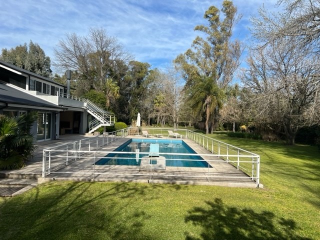 En excelente ubicación, hermoso lote de 2841 m2 con 64 mts lienales de frente, hermosa propiedad de 15 años de antigüedad, desarrollada en 2 plantas. En Planta Baja: Hall de Recepción, Living, Comedor, Family, Quincho integrado cubierto, 2 dormitorios con 1 baño completo, Cocina con comedor diario, lavadero y dependencia con baño. En Planta Alta: Sector de co-working y por un costado 2 dormitorios que comparten 1 baño completo y en el otro costado 2 dormitorios más con otro baño completo. Salida desde la planta alta a parque y piscina. En Exterior: Piscina de 68 m2 azulejada e iluminada, pérgola para 6 autos e impecable parquización. Aberturas de PVC con DVH y mosquiteros Calefacción por piso radiante Splits en todos los ambientes. Detallles de alta categoría.
