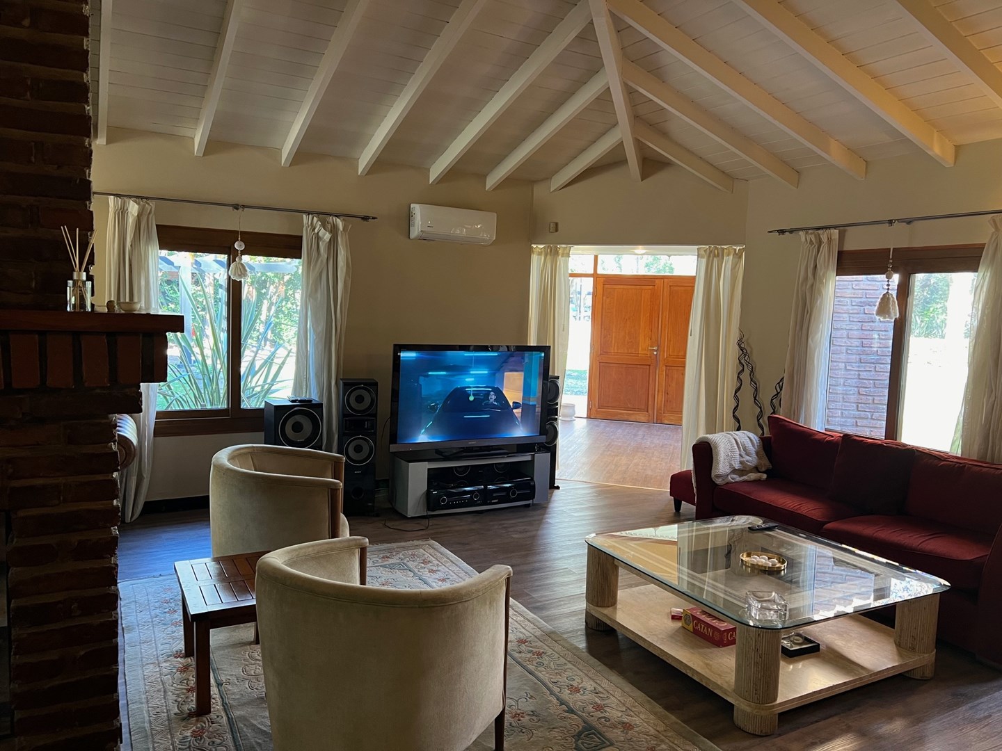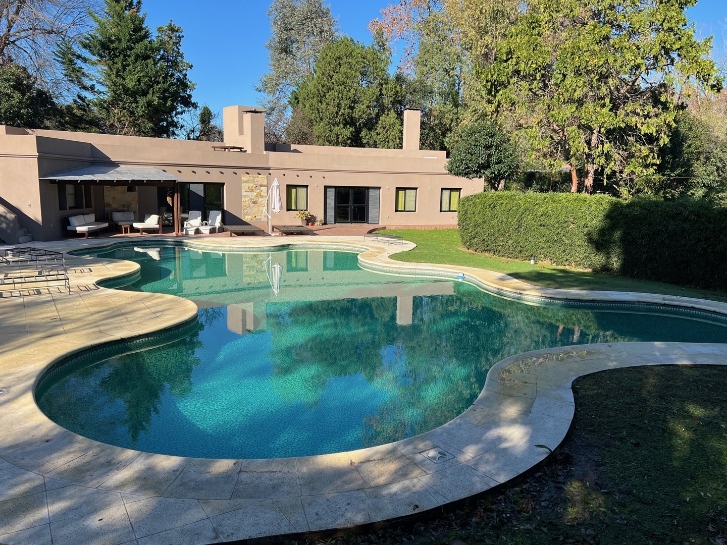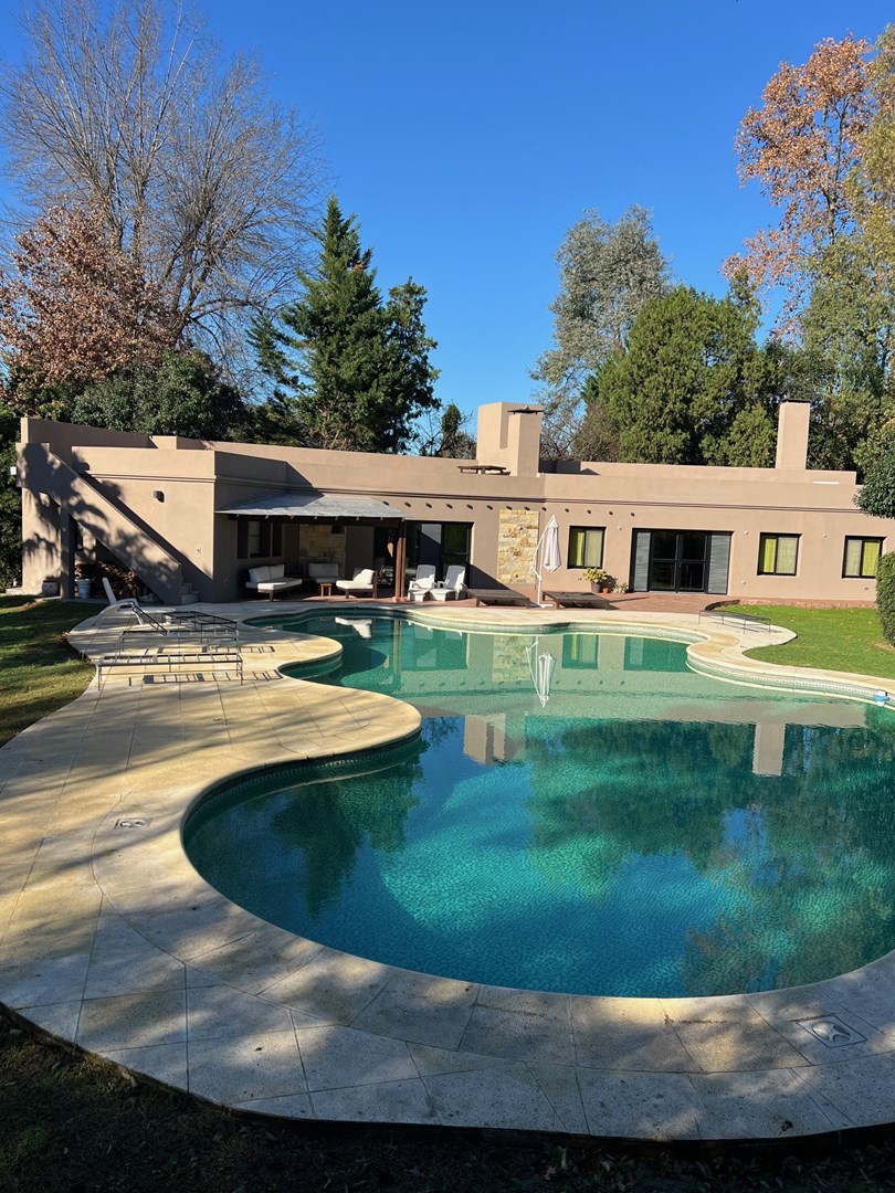RETASADO!! Imponente chalet reciclado, en venta en Highland Park C. C. sobre lote de 4845 m2 en excelente ubicación y con 750 m2 construidos. En P. Baja: Hall de Recepción, Toilette, Living con Hogar, Comedor, Family, escritorio, amplia cocina hecha a nueva con comedor diario, 2 suites junior y 4 dormitorios que comparten 2 baños completos. En P. Alta: Master Suite con vestidor y baño con hidromasaje. En Exterior: Dpto de caseros, lavadero, Quincho cubierto de generosas medidas, con sector de gimnasio y vestuarios. Piscina, única por su diseño y tamaño Quincho independiente muy amplio y piscina nunca vista, azulejada, iluminada y climatizada!! Aberturas de PVC con DVH y mosquiteros, calefacción central x aire y splits. Pisos Flotantes y de alfombras. Se analizan sin compromiso permutas y se financia hasta el 40% del valor.