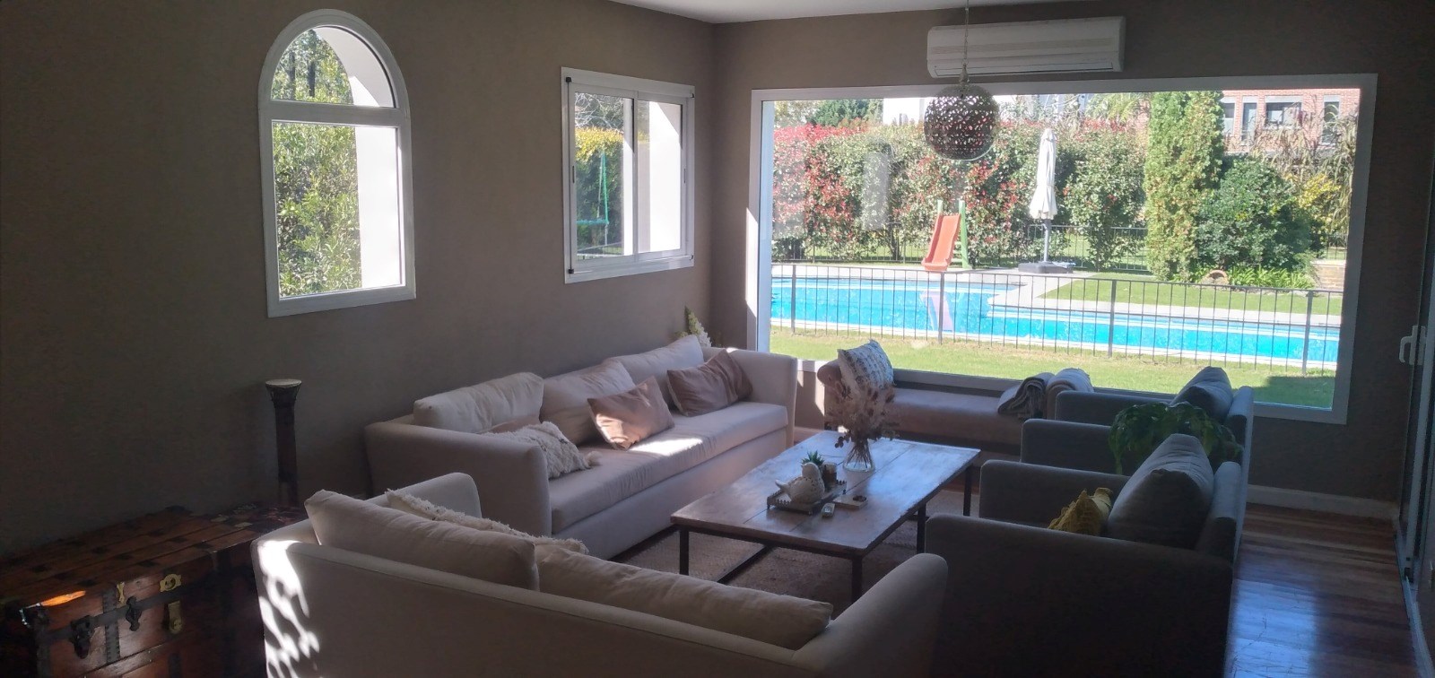 Casa en Venta con RENTA, Ayres de Pilar hasta septiembre 2026. LOTE de 1160 metros con vista a parque central. La casa tiene 290m2 cubiertos. Muy luminosa! PB: Hall de recepción , escritorio, living y comedor. Cocina con barra integrada a un estar con salida a galería con parrilla y baño de pileta. Dependencias y lavadero. Entrada de servicio. Toilette. PA: Hall de distribución, Máster Suite con vestidor y baño. 3 dormitorios y medio con 2 Baños completos . Losa radiante. Aires acondicionados en varios ambientes. Pileta con climatizador. Riego automático. Las valores pueden sufrir variaciones desde la fecha de publicación.